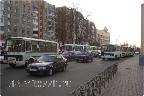 ПроисшествияСегодня утром на улицах Брестской и Октябрьской снова повторилась картина двухнедельной давности. Вдоль дорожного полотна с обеих сторон дороги можно было видеть пустые "газели" и "пазики". Их водители в это время бастовали на Комсомольской площади, рядом с остановкой "Магазин "Чайка".