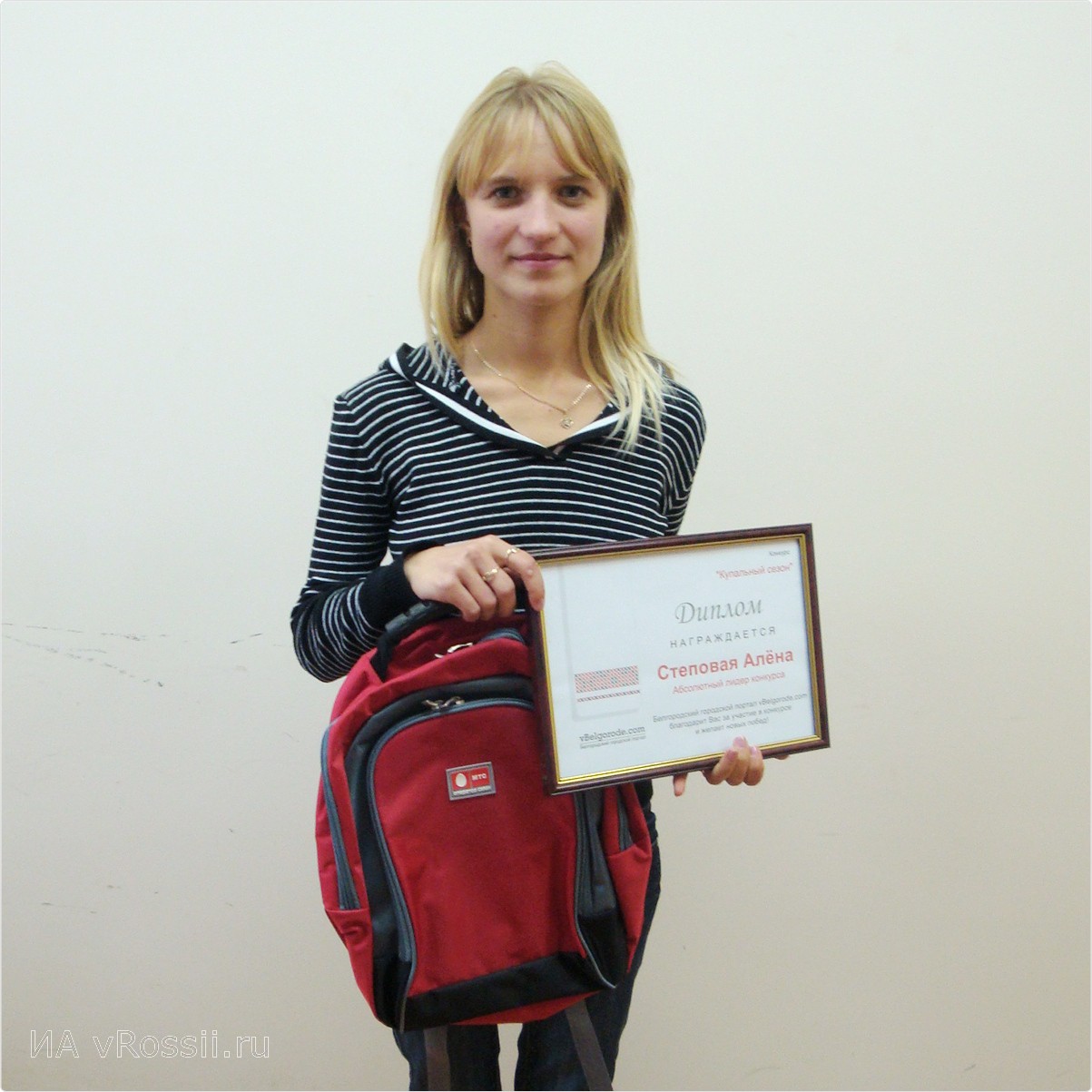 На Белгородском городском портале vBelgorode.com Абсолютным Лидером стала Алёна Степовая. К сожалению, сама победительница не смогла присутствовать на награждении в силу тотальной занятости. Ее заменила ее сестра, очаровательная Валентина Степовая, этим летом уже получившая почетное звание вице-Королевы Выпускного Бала от портала vBelgorode.com.