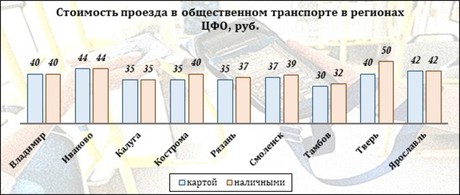 Похожая разница наблюдается в стоимости проезда в Иваново. Правда, такое расхождение есть в тарифах у частных перевозчиков (44 руб.) и у муниципального транспорта, в данном случае в троллейбусах (32 руб.).