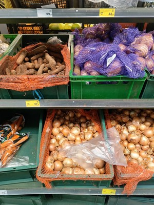 Нижний порог цен на вареную колбасу начинается с 90-110 руб., верхняя граница – 290-350 руб. Килограмм картофеля стоит 35-45 руб., моркови – 27 руб., репчатого лука – 42 руб. Зеленый огурец продается за 100-150 руб., консервированный зеленый горошек – 50-200 руб., зелень по предпочтению покупателя: укроп и петрушка по скидке за 25 руб. (без нее за 90 руб.), кинза – за 75 руб.