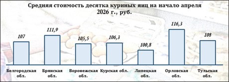 Данную информацию мы почерпнули из еженедельного мониторинга цен, который проводит Росстат. По состоянию на 6 апреля, средняя стоимость десятка куриных яиц в ЦФО перевалила за 100 рублей. Среди интересующих нас регионов, самые дорогие яйца продаются в Орловской области – 116,3 руб. Меньше всего данный продукт стоит в Липецкой области – почти 101 руб.