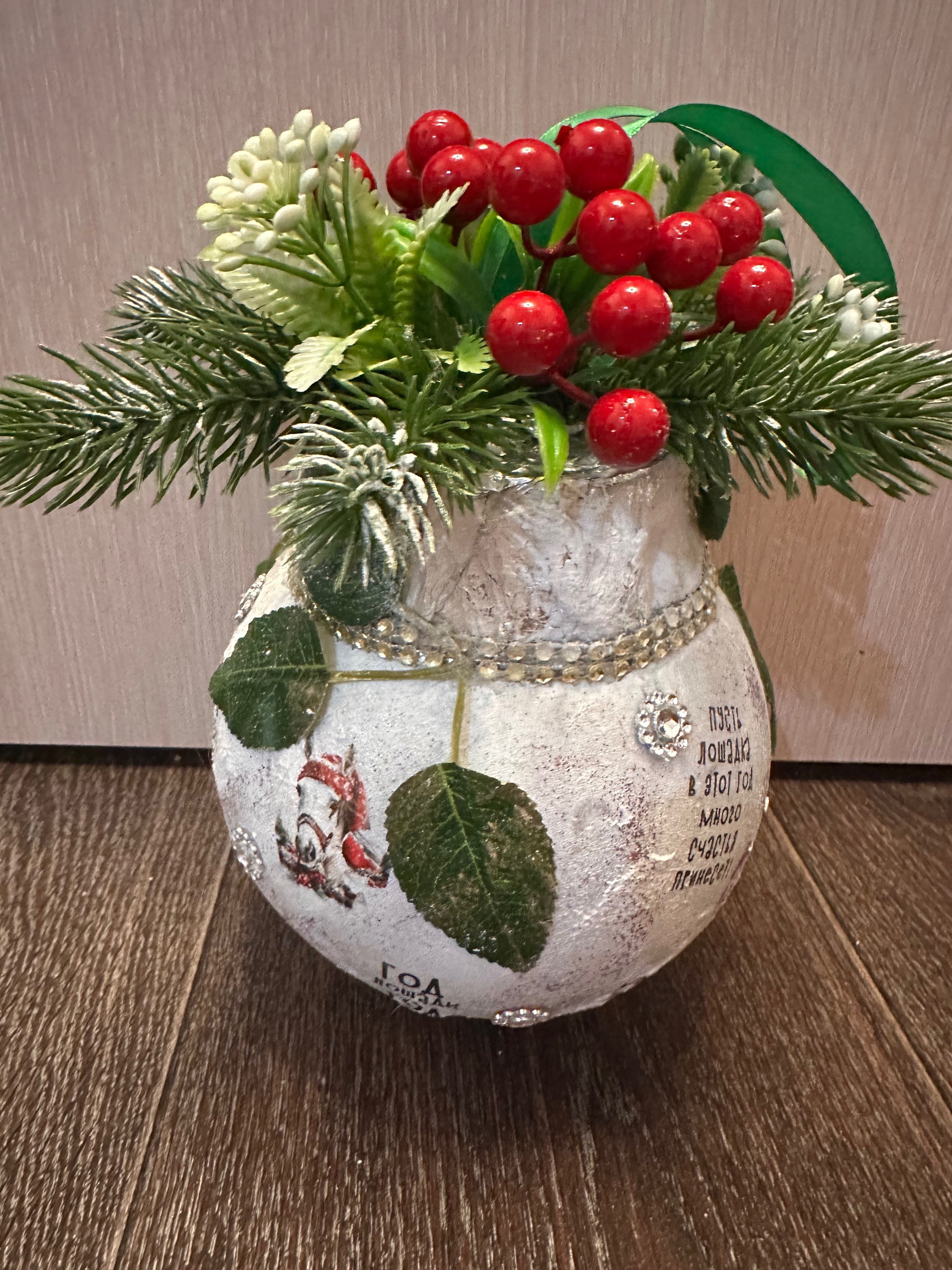 Описание: В преддверии Нового года каждый из нас стремится создать атмосферу волшебства и уюта. Одним из самых популярных и красивых украшений для новогодней елки являются шарики, вот и мы решили создать наш шарик «Елочное волшебство».