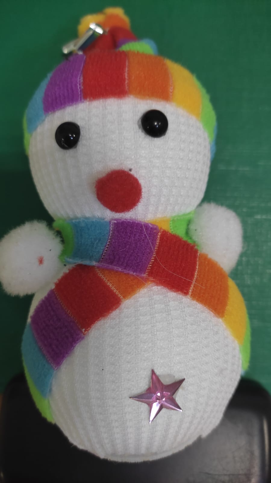 Описание: Этот прекрасный снеговичок сделан из пенопласта,обтянутого мягкой тканью и украшенного бусами и пайетками.