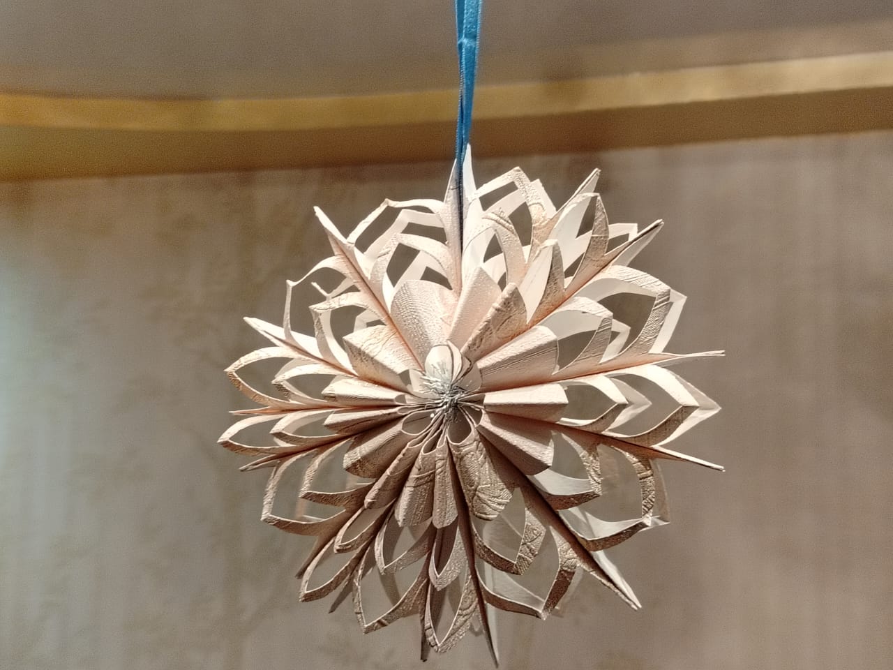 Описание: Объёмная новогодняя снежинка - главный символ зимы, торжества и обновления. Её шестиугольная форма связана с кристаллической структурой льда, а уникальные узоры символизируют неповторимость каждого момента и возможность создать что-то новое.