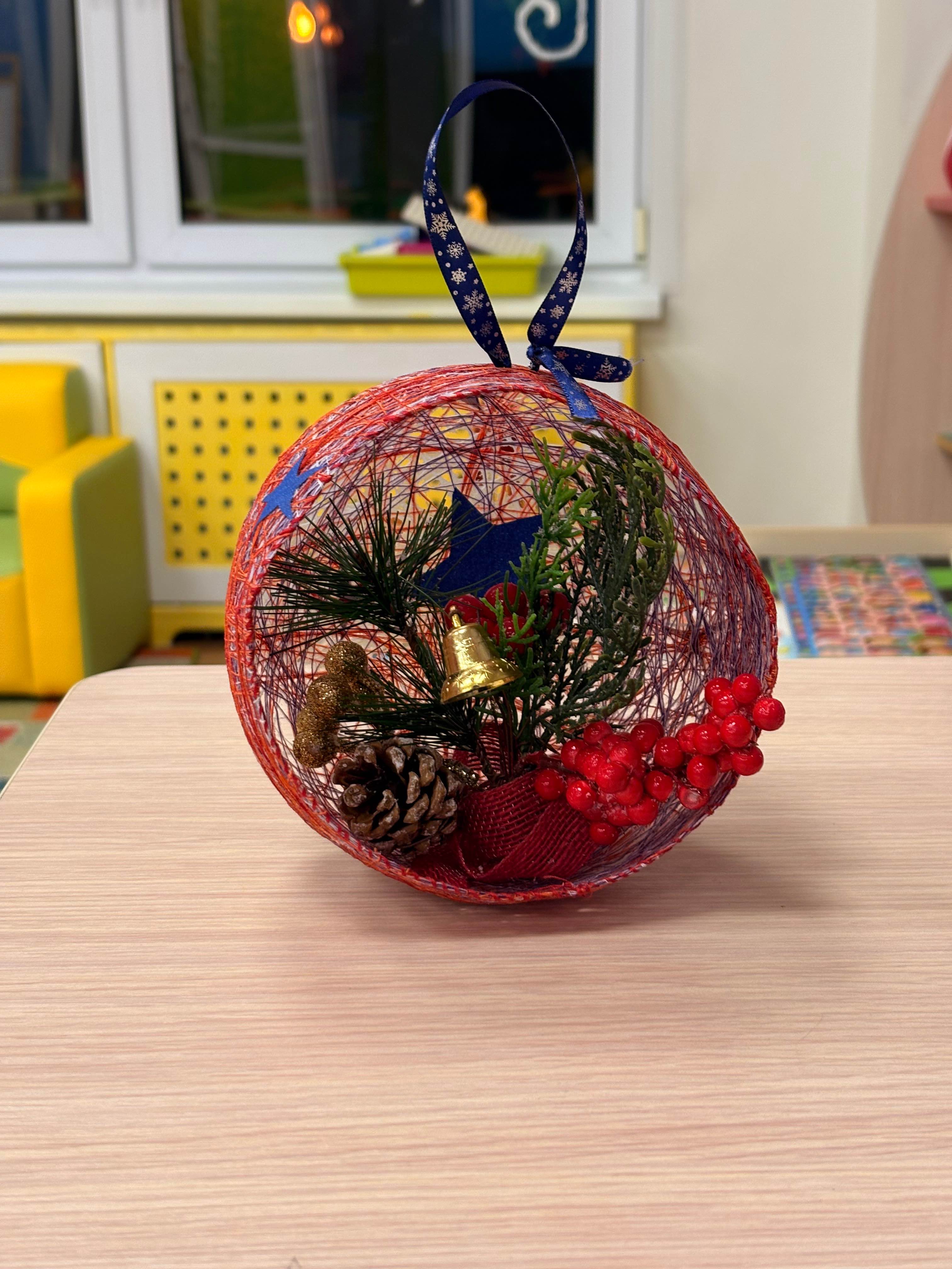 Описание: Шар, который исполняет желания, выполнен из ниток, с использование декоративных/природных материалов