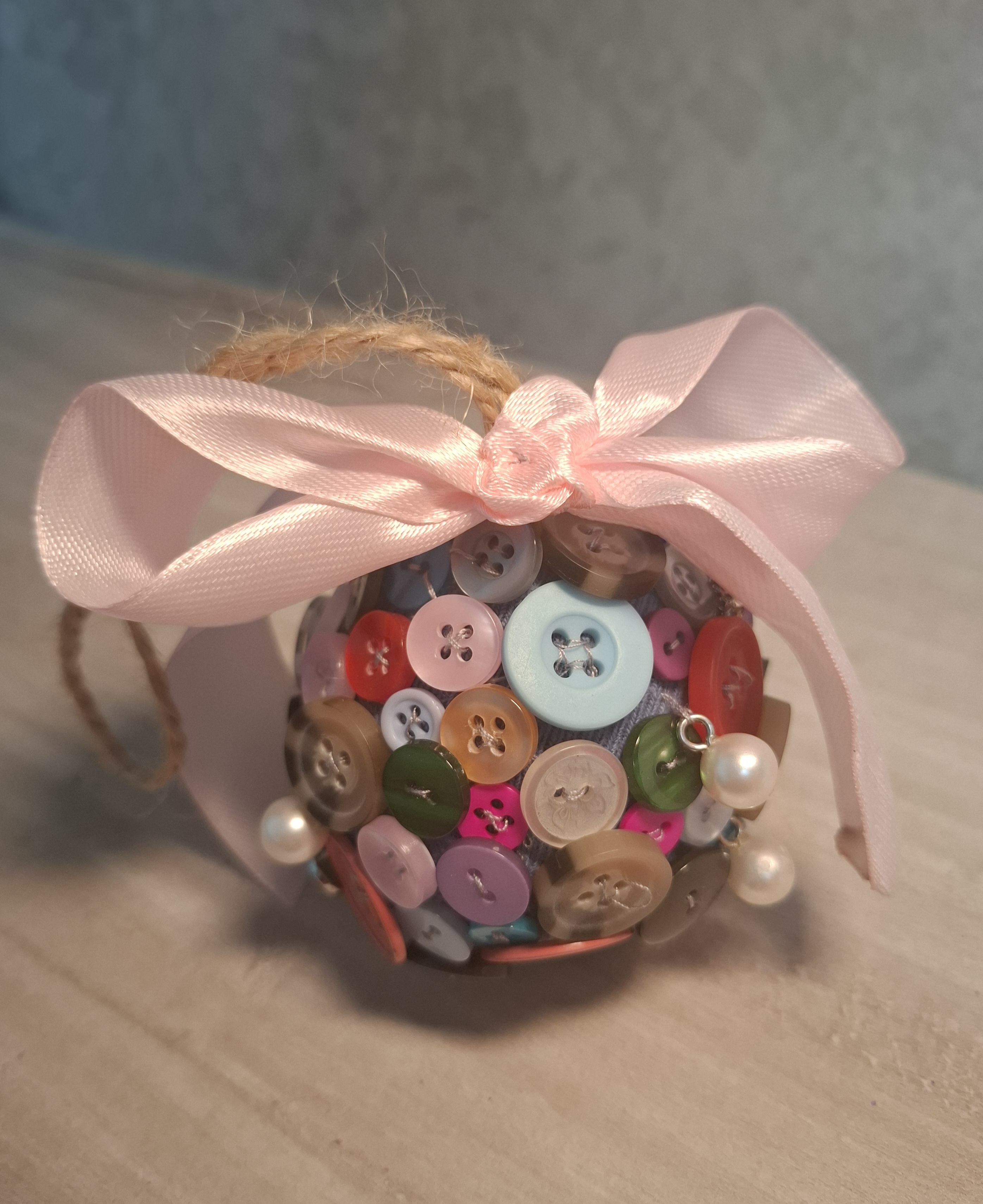Описание: Необычный шарик изготовлен из разнообразных пуговиц